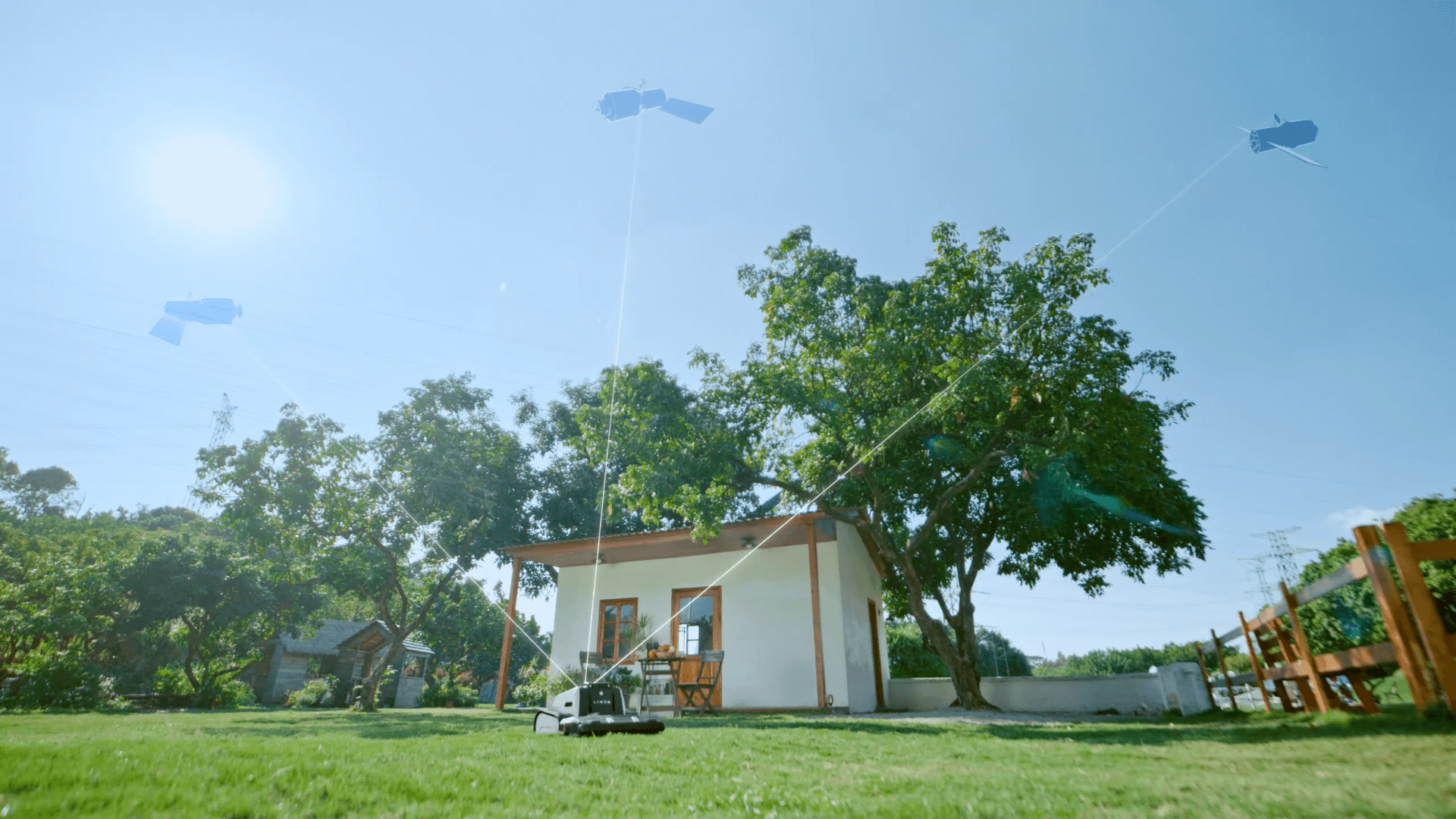 Bleiben Sie überall verbunden. Selbst unter Bäumen, in der Nähe von hohen Mauern oder in engen Bereichen bietet Lymow One Plus ein starkes Signal für präzises und unterbrechungsfreies Mähen.